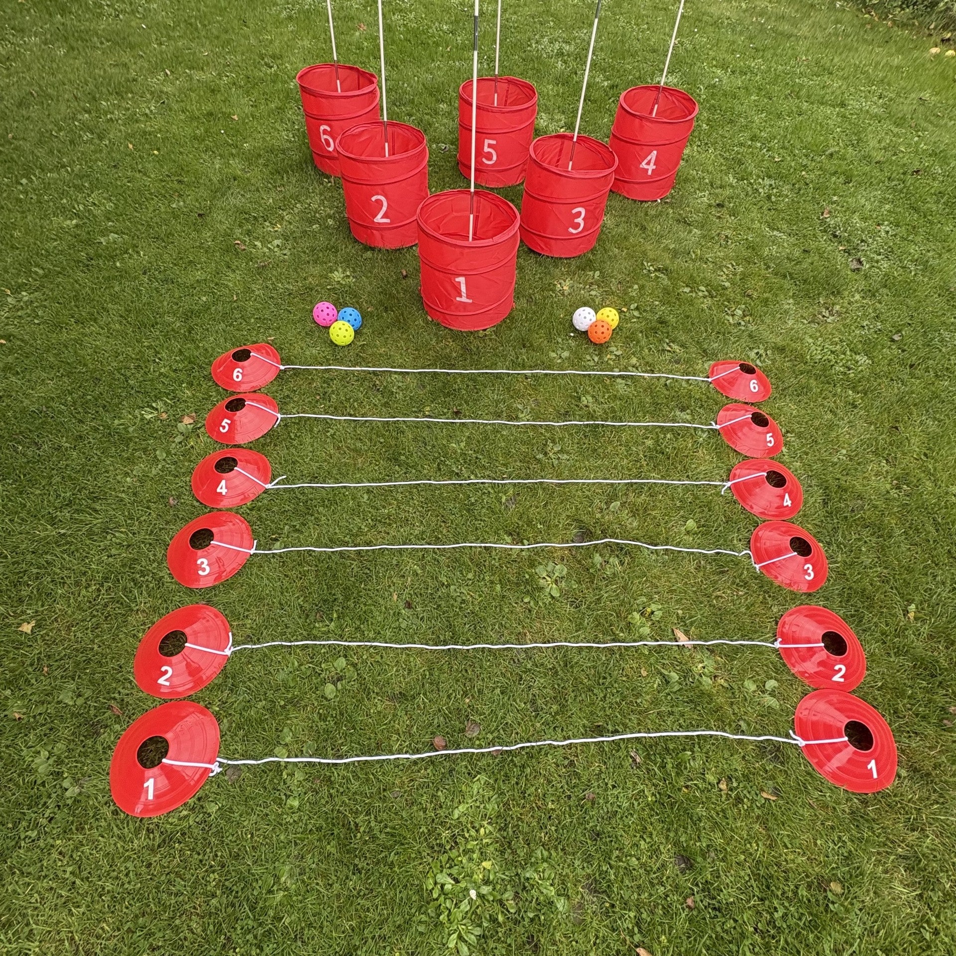 BUCKET GOLF er et bærbart og fleksibelt havespil inspireret af traditionel golf – bare uden behov for en golfbane! Spillet spilles med farvede bolde og store buckets (kurve) som placeres rundt i haven, på stranden eller i parken. Hver spiller vælger sin egen boldfarve og forsøger at ramme kurvene i så få slag som muligt.